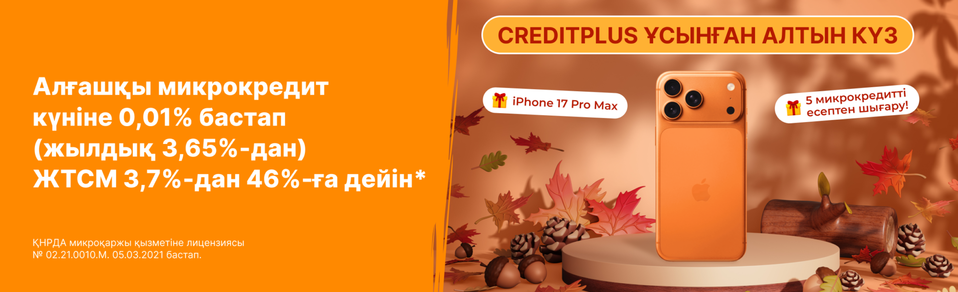 CreditPlus – Қазақстандағы онлайн-микрокредит беру қызметі. Оның көмегімен картаға жылдам және тиімді микрокредит рәсімдеуге болады. Біздің мақсатымыз – микрокредиттеу процесін қолжетімді, ыңғайлы және айқын ету. Қызмет тәулік бойы қолжетімді, өтінімді онлайн режимінде 10 минут ішінде беру мүмкіндігі бар. Шешім тез арада беріледі.